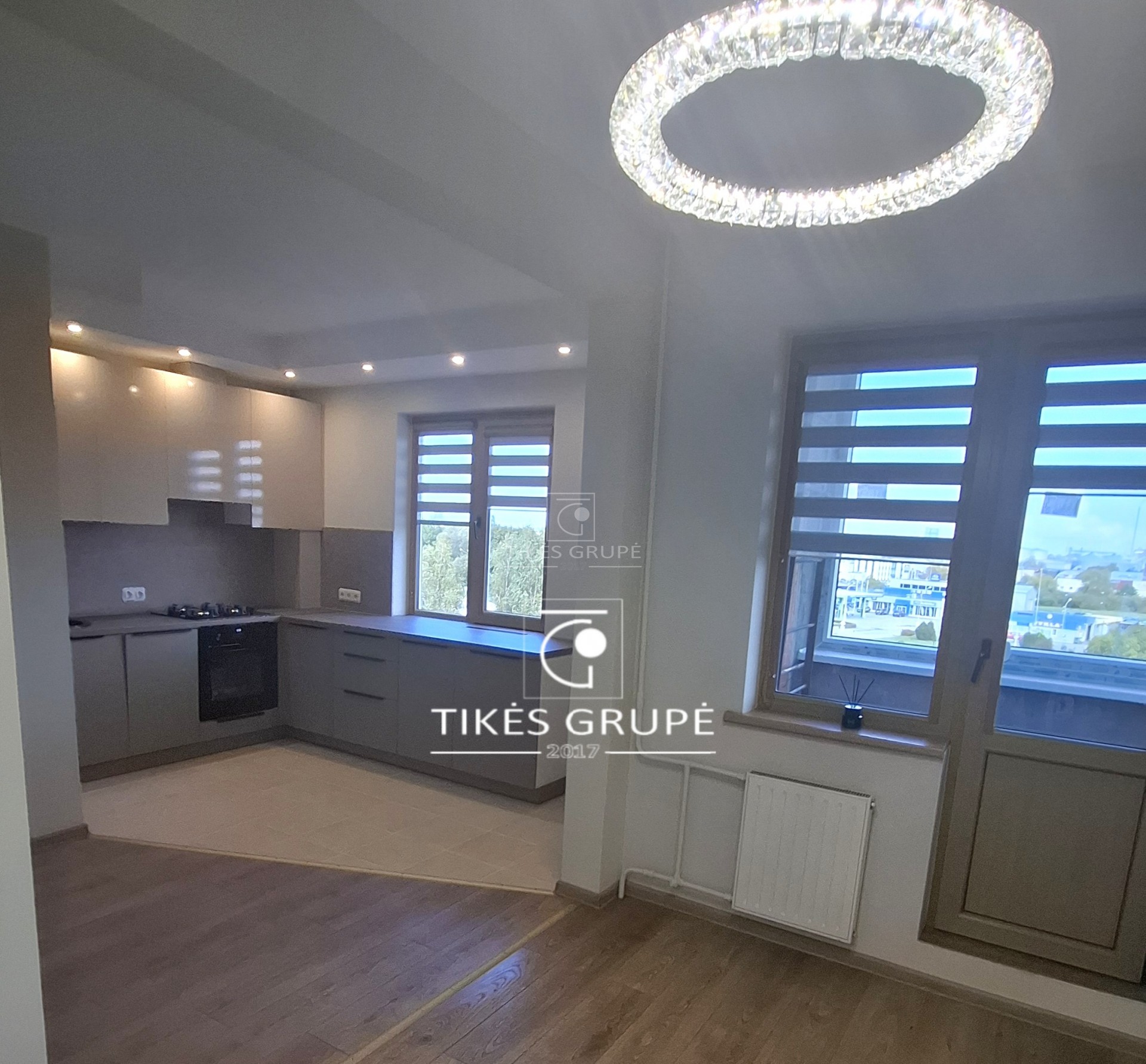 Plastikiniai langai orientuoti į rytų ir vakarų puses – butas saulėtas visą dieną.