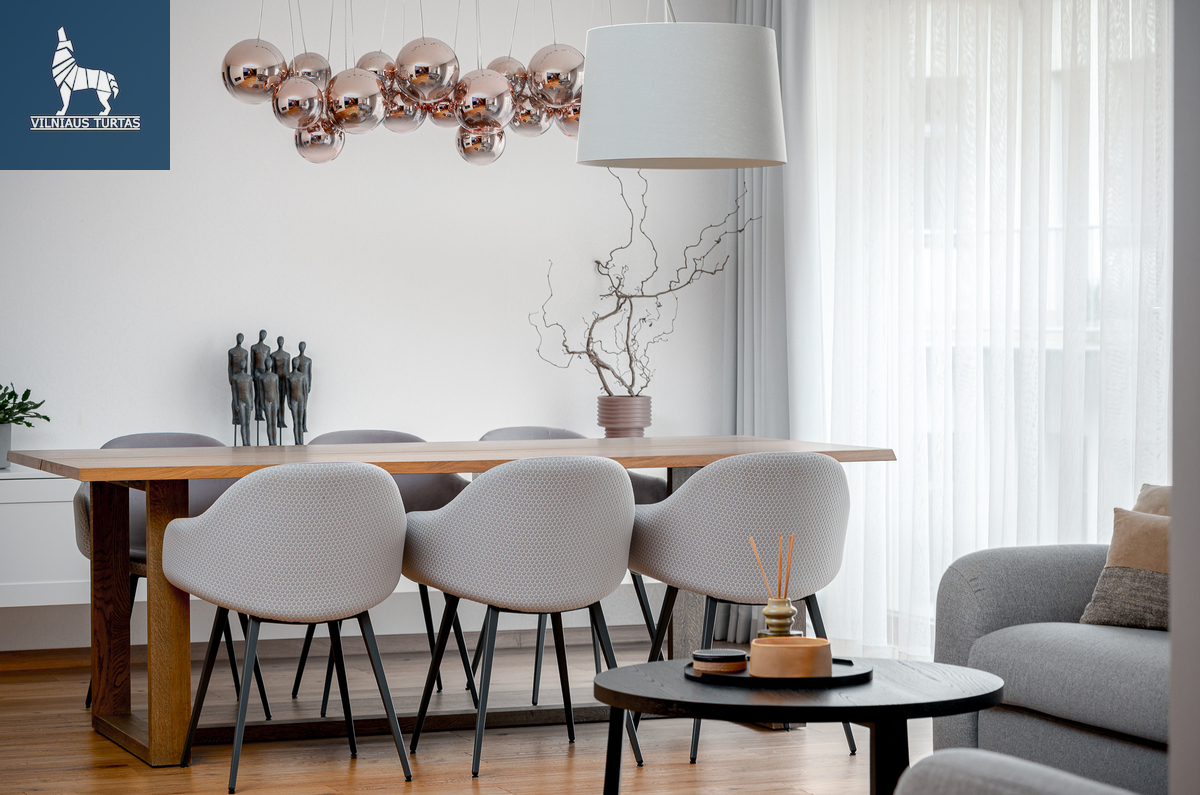 – Labai erdvi svetainė su valgomuoju: Šviesi ir erdvi svetainė sujungta su valgomuoju, puikiai tinkanti šeimos susibūrimams ir vakarienėms su draugais.