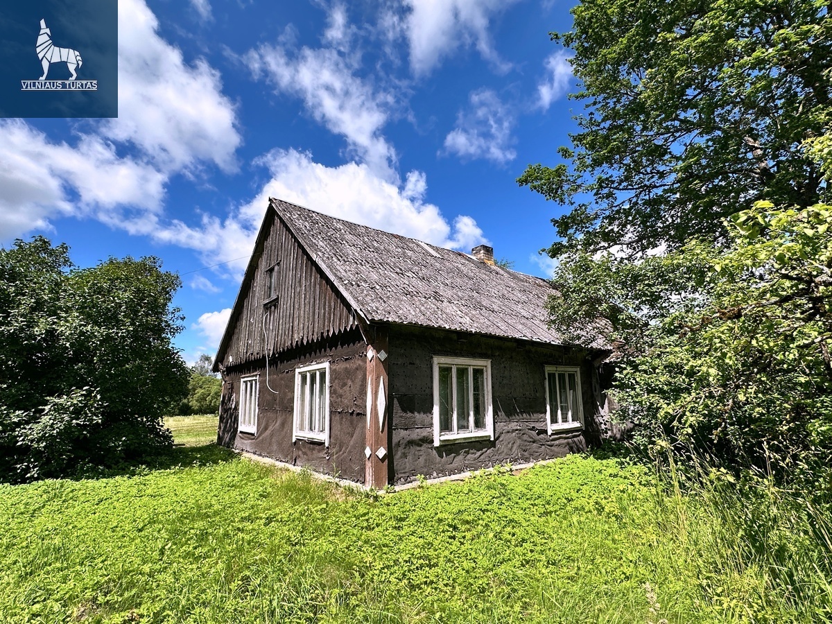 Yra sodas , prieina vandentiekis , kanalizacija 0,5 km už miesto ribų . prie pagrindinio kelio Žemės yra 2 ha . , tačiau galima pirkti pagal susitarimą Plotas (m²): 70 Sklypo plotas (a): 2000 Kambarių skaičius: 2 Aukštų skaičius: 1 Statybos metai: 1936 Namo tipas: Medinis Būklė: Reikia remontuoti Šildymas: Kietas kuras Bendrinti