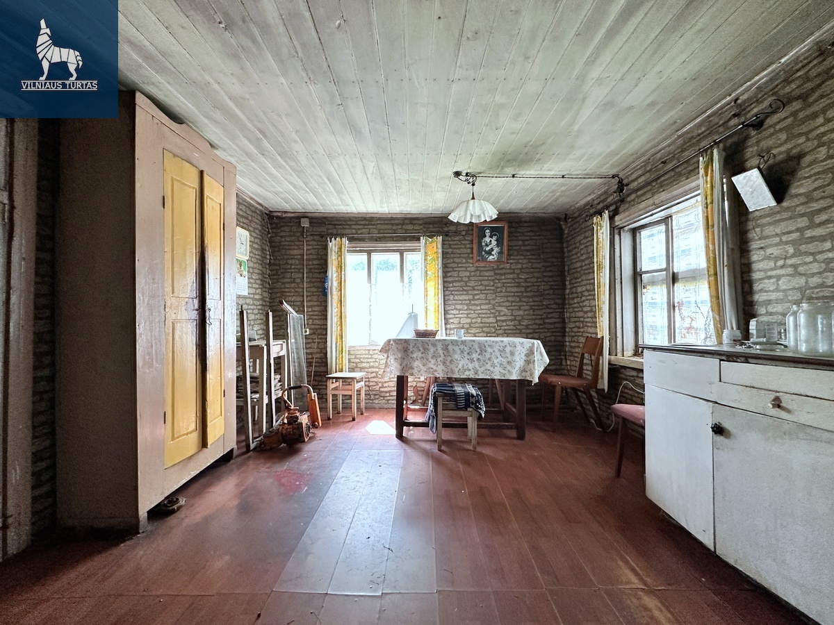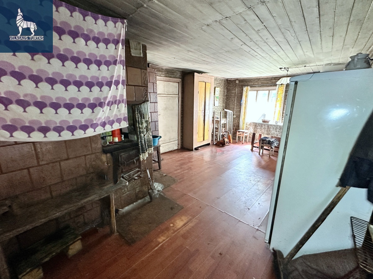 Yra sodas , prieina vandentiekis , kanalizacija 0,5 km už miesto ribų . prie pagrindinio kelio Žemės yra 2 ha . , tačiau galima pirkti pagal susitarimą Plotas (m²): 70 Sklypo plotas (a): 2000 Kambarių skaičius: 2 Aukštų skaičius: 1 Statybos metai: 1936 Namo tipas: Medinis Būklė: Reikia remontuoti Šildymas: Kietas kuras