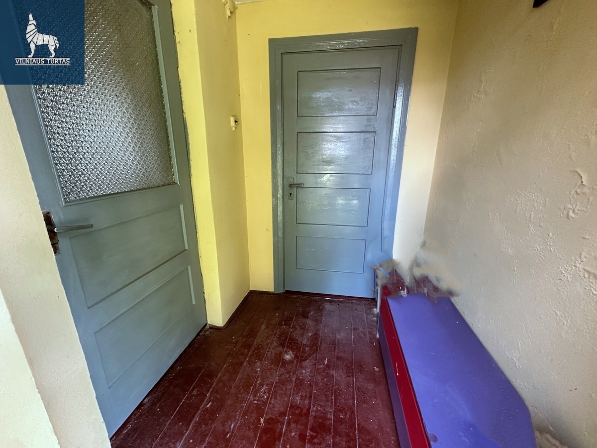 Yra sodas , prieina vandentiekis , kanalizacija 0,5 km už miesto ribų . prie pagrindinio kelio Žemės yra 2 ha . , tačiau galima pirkti pagal susitarimą Plotas (m²): 70 Sklypo plotas (a): 2000 Kambarių skaičius: 2 Aukštų skaičius: 1 Statybos metai: 1936 Namo tipas: Medinis Būklė: Reikia remontuoti Šildymas: Kietas kuras