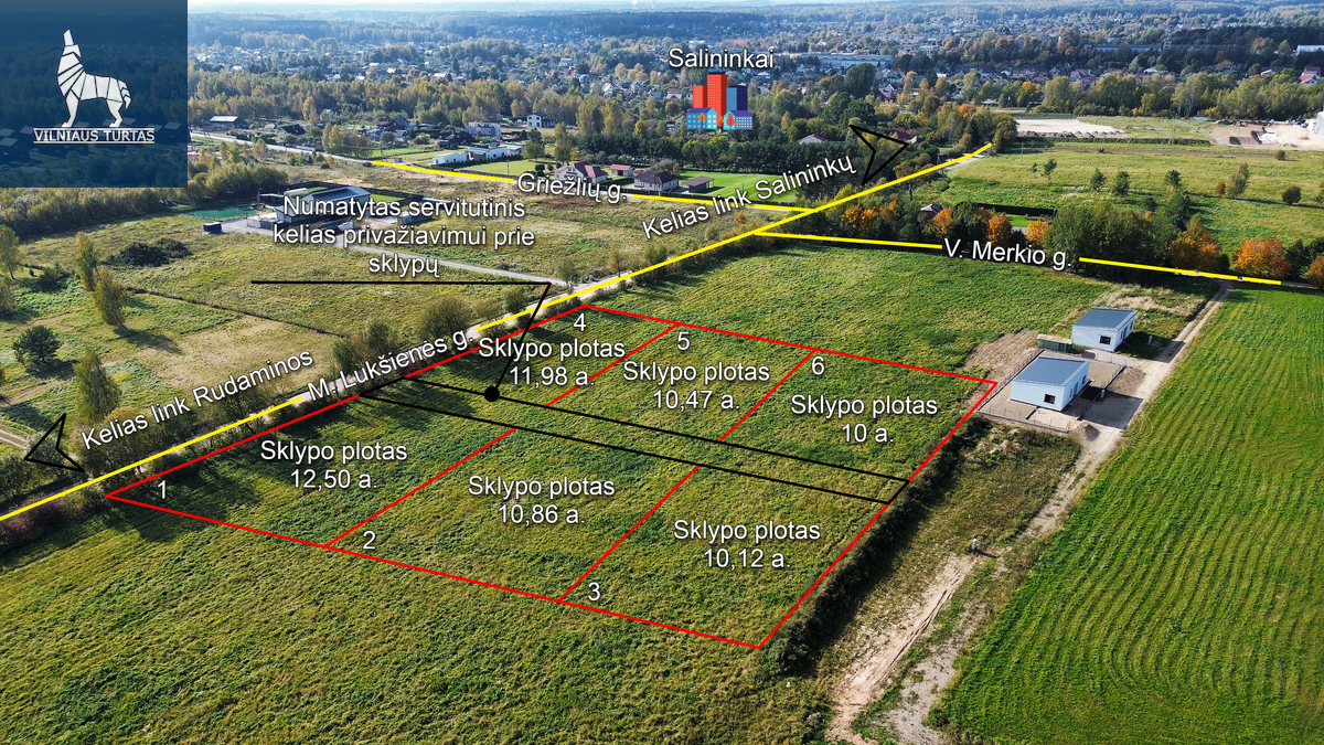 Parduodami šeši namų valdos sklypai Salininkuose, Meilės Lukšienės gatvėje.
